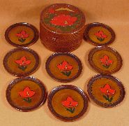 Occupied Japan Coaster SetPainted butterfly and camellia design on this coaster set, in excellent condition. Complete set, with 8 coasters.#002: $50.00